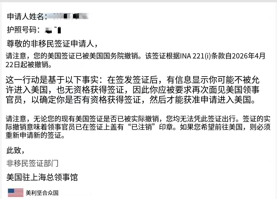 又一客户美国签证被取消!具体分析美国签证被取消原因